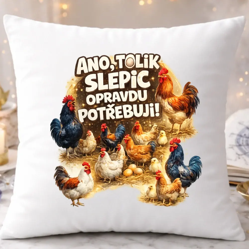 Pokud někdo někdy řekl, že „už máš slepic dost“, tenhle polštář má jasnou odpověď 😄
