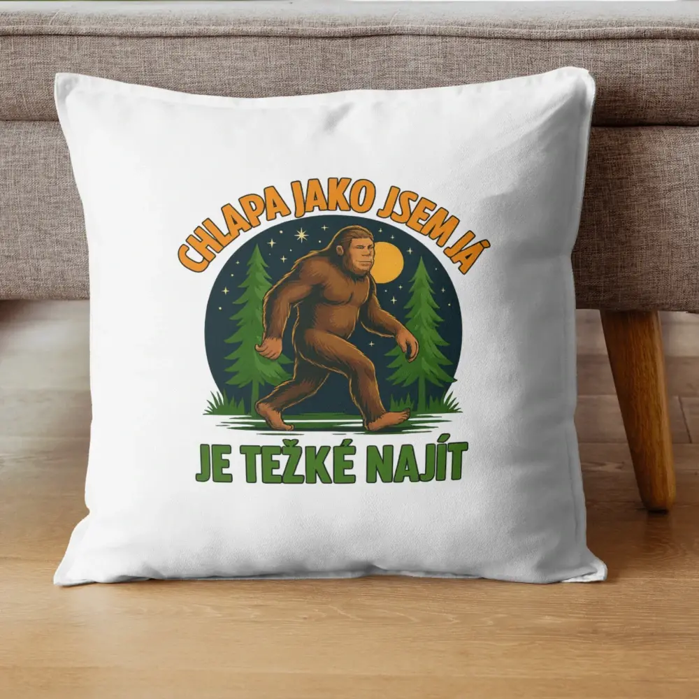 Někteří chlapi se nehledají snadno 😎 Tento dekorační polštář s hláškou „Chlapa jako jsem já je těžké najít“ a originálním motivem legendárního lesního chodce je perfektní kombinací humoru, sebevědomí a nadsázky. Ideální doplněk pro každého, kdo ví, kým je 💪