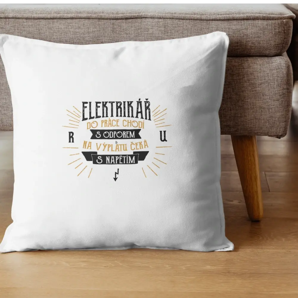 Tenhle dekorační polštář s nápisem „Elektrikář do práce chodí s odporem, na výplatu čeká s napětím“ pobaví na první pohled a skvěle zapadne do každé domácnosti, dílny nebo kanceláře ⚡