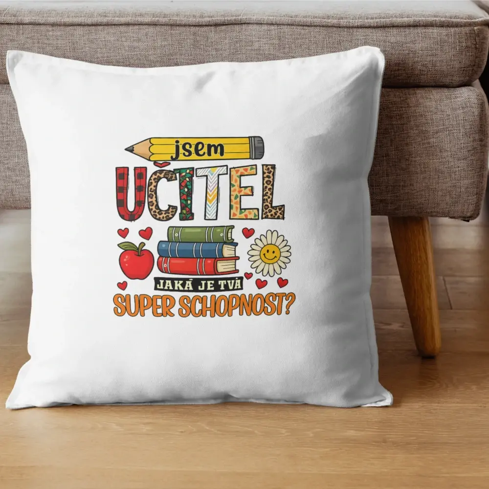 Dekorační polštář „Jsem učitel – jaká je tvá super schopnost?“
