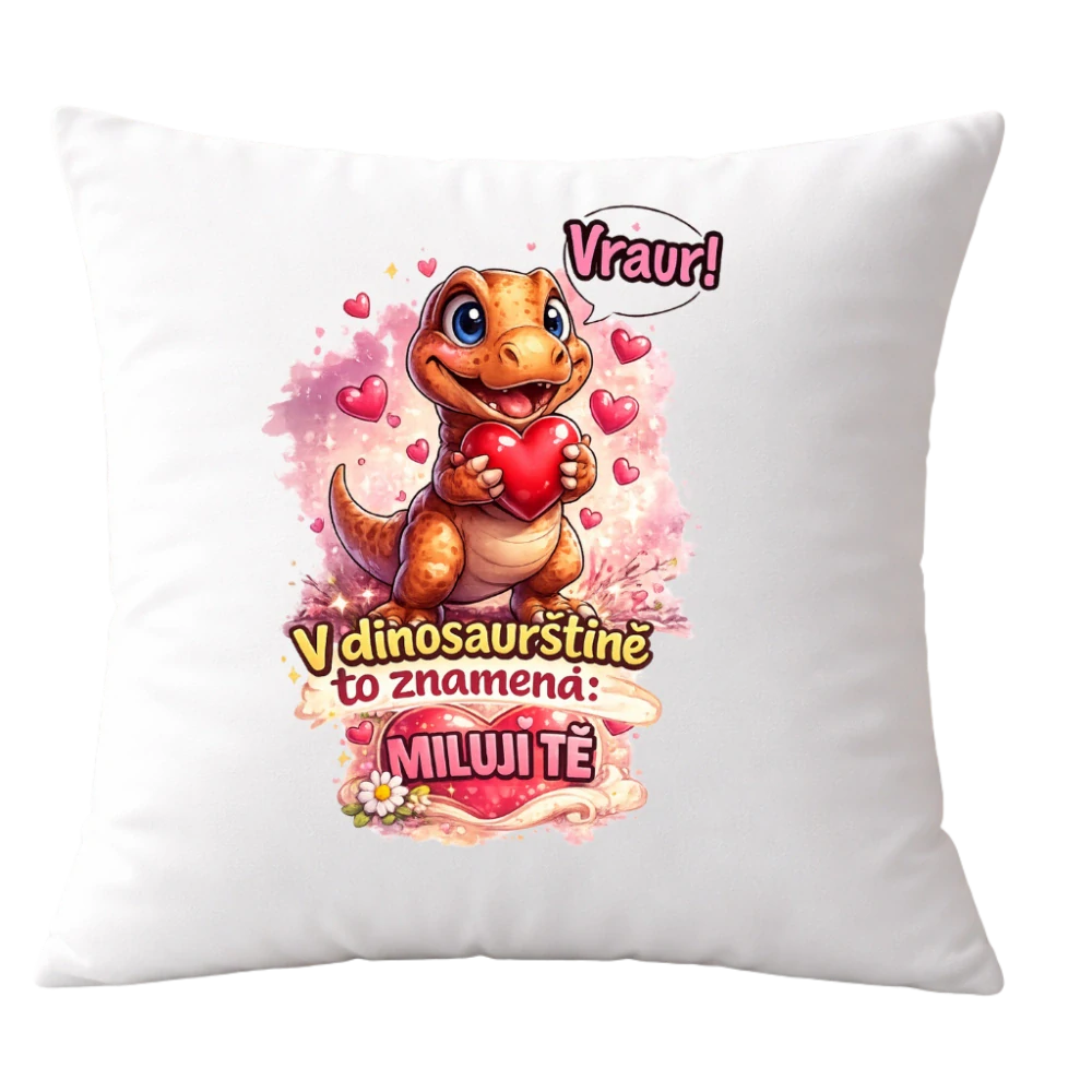 Dekorační polštář V dinosauřtině to znamená: Miluji tě