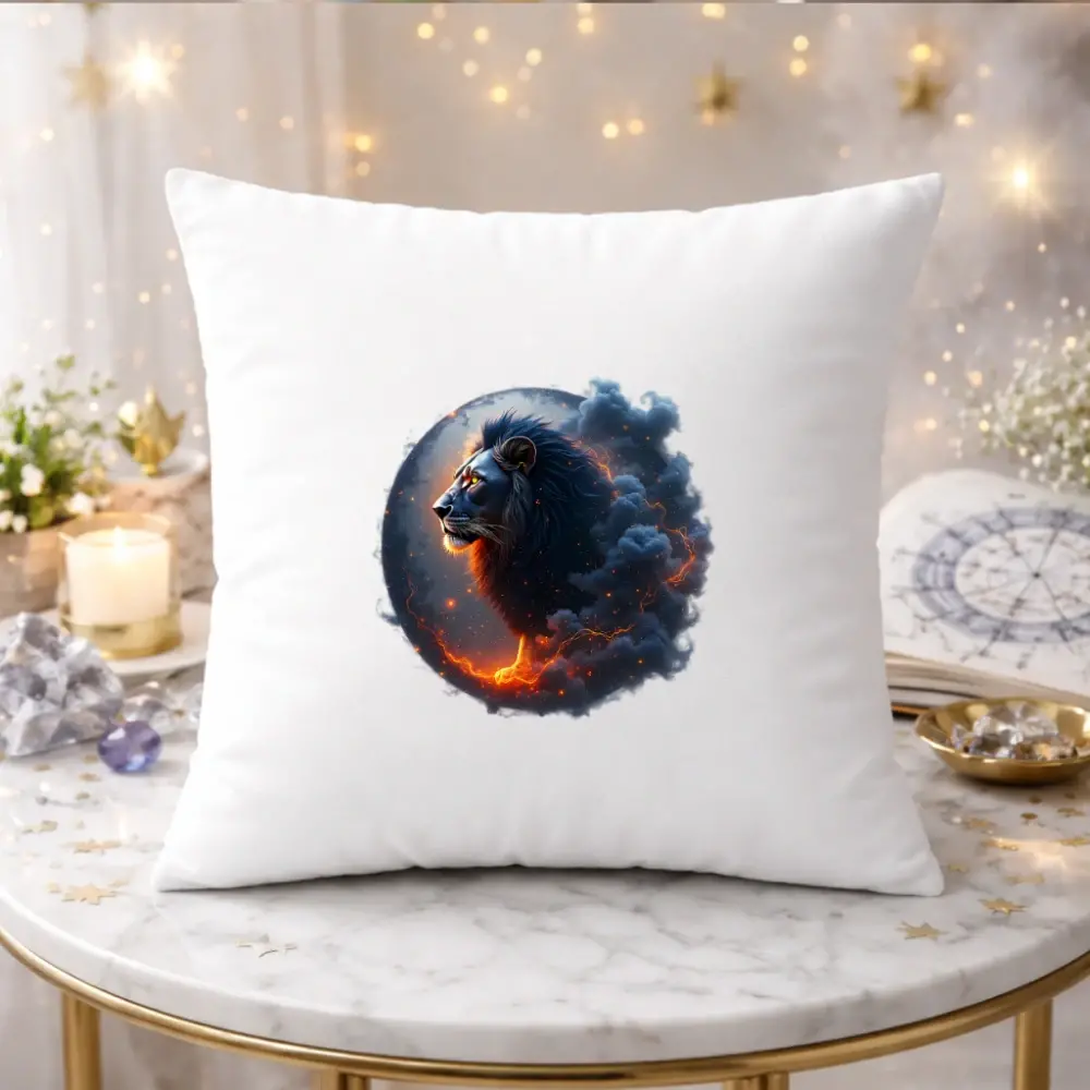 Dominantní motiv lva obklopeného temnou energií a žhavými prvky působí luxusně, dramaticky a velmi moderně. Polštář se stane výrazným doplňkem obývacího pokoje, ložnice i pracovny a zároveň osobním symbolem nositele tohoto znamení.