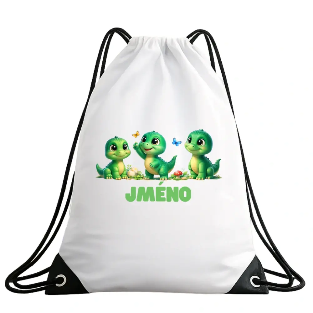 Dětský vak na záda se jménem – Tři dinosauřiSkladem 100 ks179 Kč/ ks