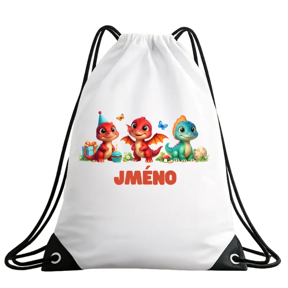 Dětský vak na záda se jménem – Veselí dinosauřiSkladem 100 ks179 Kč/ ks