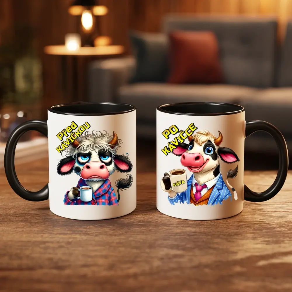 Hrnček “Před kafíčkem / Po kafíčce – Vtipná kravička”