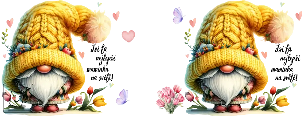 🎨 Popis produktu: Hledáte perfektní dárek ke Dni matek? Tento nádherný hrnek potěší každou maminku! Na bílém keramickém podkladu je roztomilý skřítek s pletenou žlutou čepicí a květinami, který doprovází milý nápis "Jsi ta nejlepší maminka na světě!" 💖
