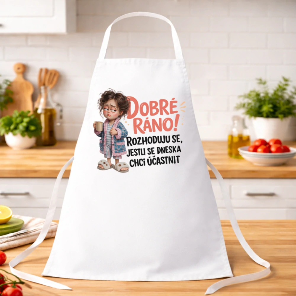 Kuchyňská zástěra Dobré ráno – Rozhoduju se, jestli se dneska chci účastnit