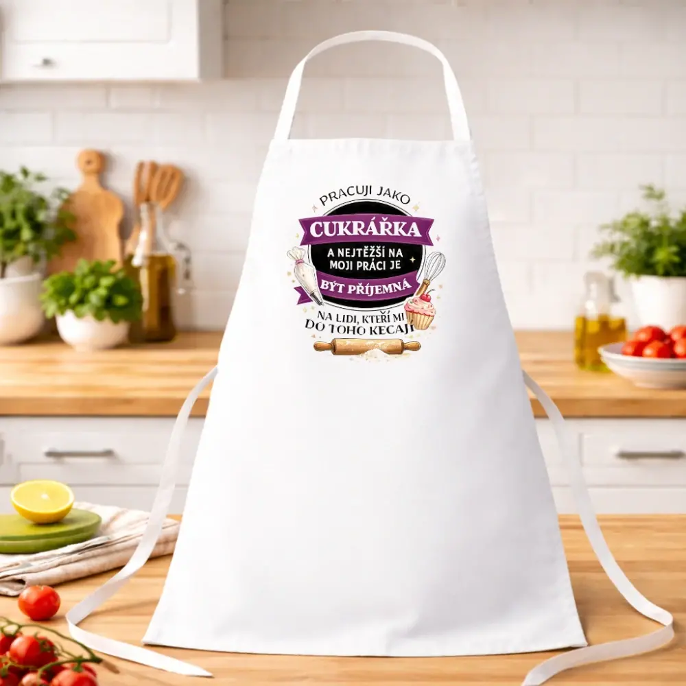 Kuchyňská zástěra Pracuji jako cukrářka – vtipná zástěra na pečení