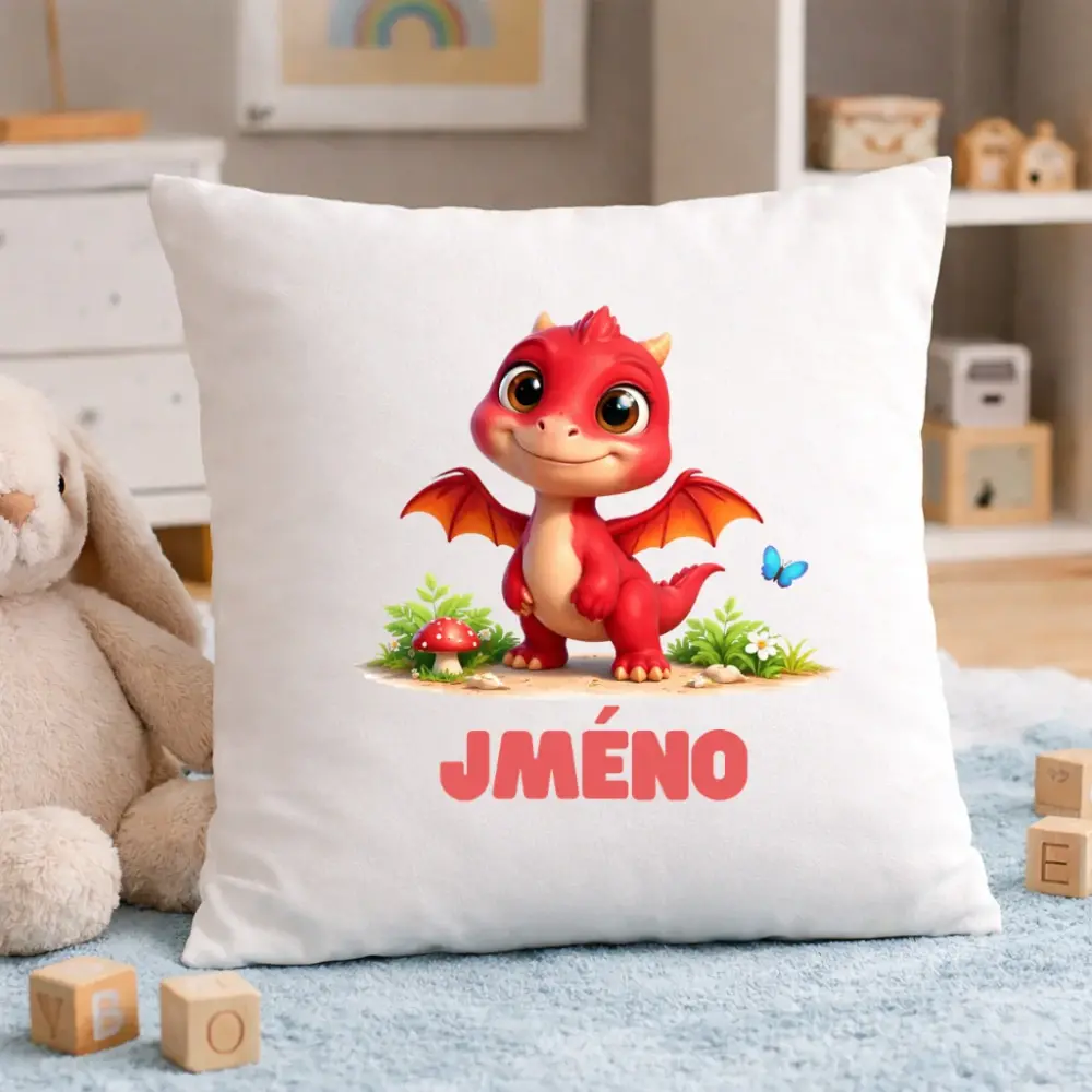 Personalizovaný dětský polštář – Roztomilý dinosaurus se jménem