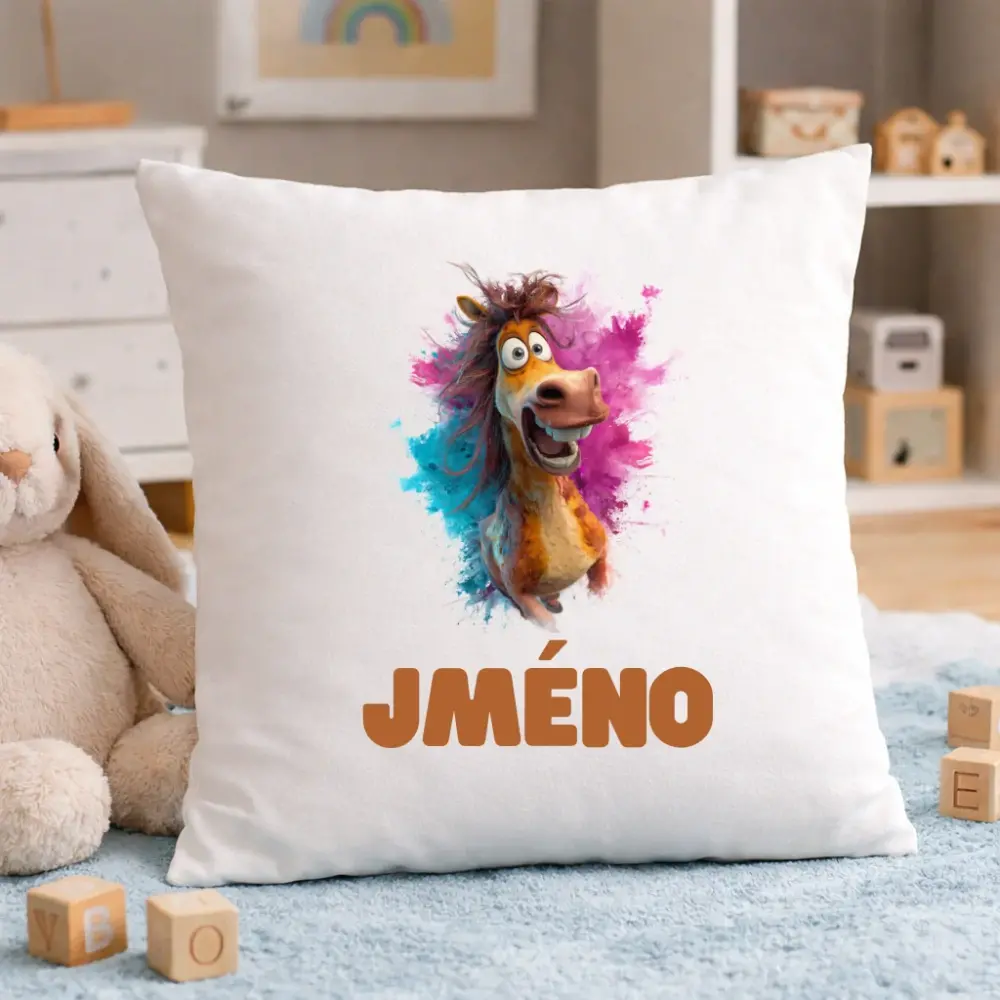Personalizovaný dětský polštář – Veselý koník se jménem