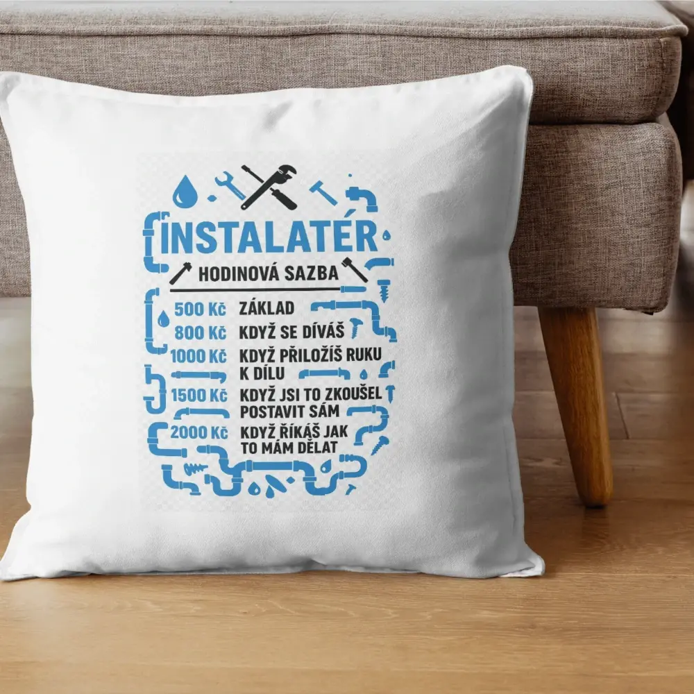 Polštář Instalatér – hodinová sazba (vtipný motiv)Skladem 100 ks385 Kč/ ks