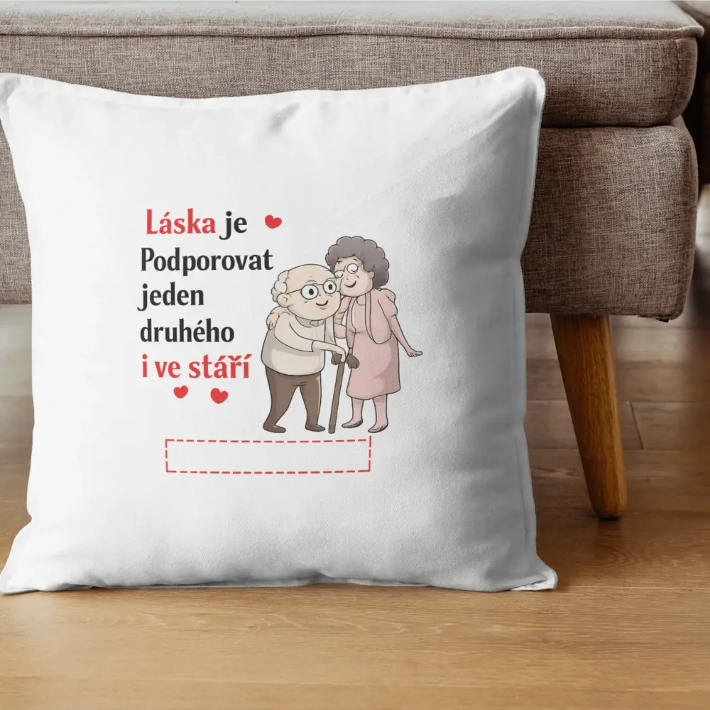 Polštář „Láska je podporovat jeden druhého i ve stáří“ – s možností vlastního textu