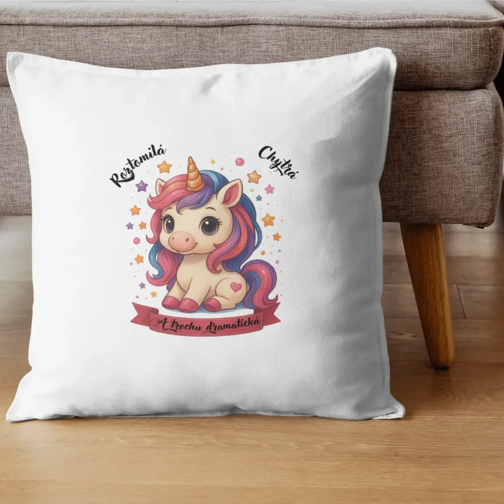 Polštář „Roztomilá, chytrá a trochu dramatická“ – JednorožecSkladem 100 ks385 Kč/ ks
