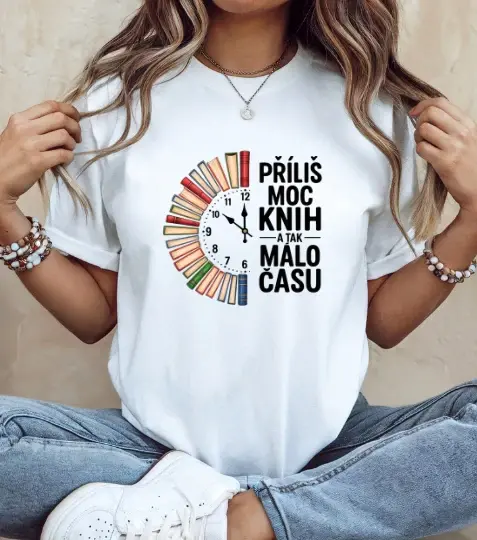 Každá čtenářka to zná… poličky plné knih, seznam k přečtení nekonečný a hodiny utíkají nějak moc rychle. Toto tričko vystihuje realitu knihomolského života dokonale – originální ciferník poskládaný z knih, které „tikají“, až se do nich pustíš.