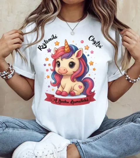 Roztomilá, chytrá… a trochu dramatická – jednorožčí tričkoSkladem 3 ks399 Kč/ ks