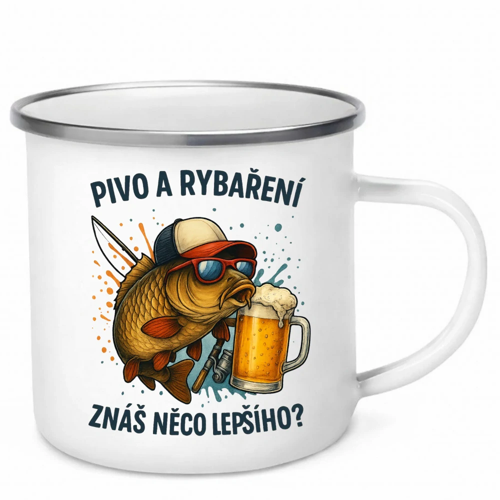 Smaltovaný hrnek – Pivo a rybaření, znáš něco lepšího?