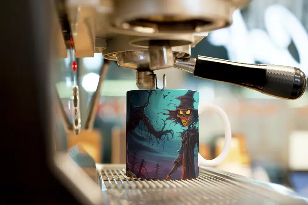 Tento hrnek s designem strašáka a lebky je ideální pro všechny milovníky hororů, Halloweenových párty nebo pro ty, kteří rádi překvapí.