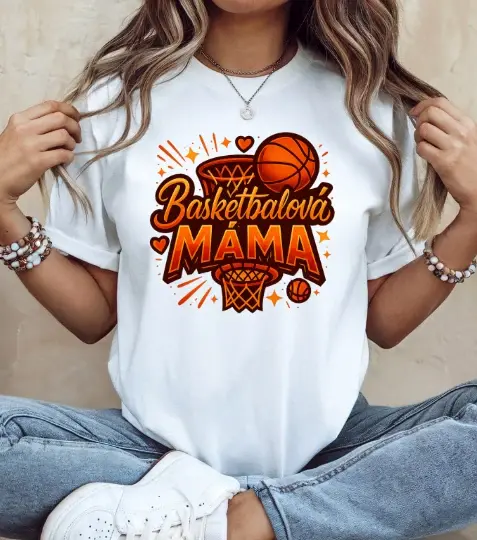 Toto tričko je ideální pro každou mámu, která fandí z plných plic – ať už na tribuně nebo doma. Živý oranžový motiv s basketbalovým košem, míčem a dynamickými prvky dokonale vystihuje energii tohoto krásného sportu.