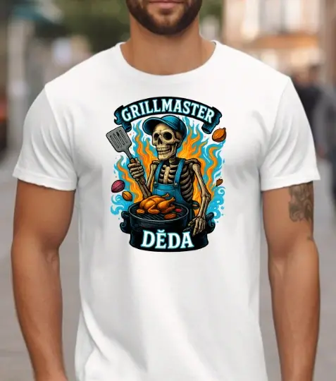 Motiv „Grillmaster Děda“ je ideální pro ty, kteří mají doma krále grilu – dědu, který dokáže udělat nejlepší maso široko daleko. Originální design se skeletovým grillmasterem, ohni a šťavnatým masem dodává tričku šmrnc, humor a styl.
