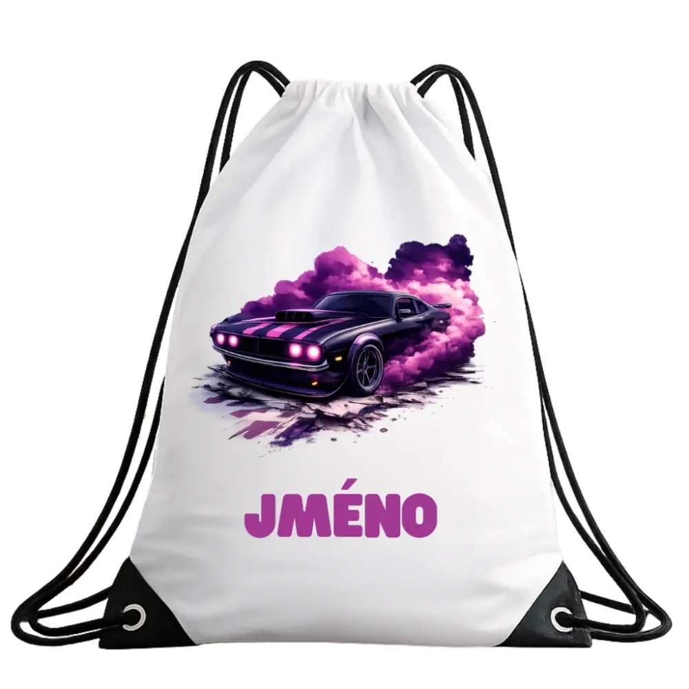 Tento vak na záda se jménem a motivem sportovního auta zaujme na první pohled. Temné auto obklopené fialovým kouřem působí energicky, moderně a trochu drsně – ideální pro všechny malé i větší milovníky aut, motorsportu a výrazných motivů 🏁😎