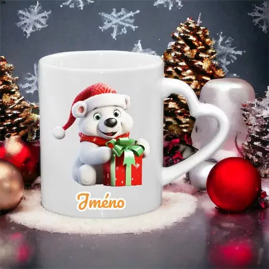 Vánoční hrnek medvídek se srdíčkovým uchem