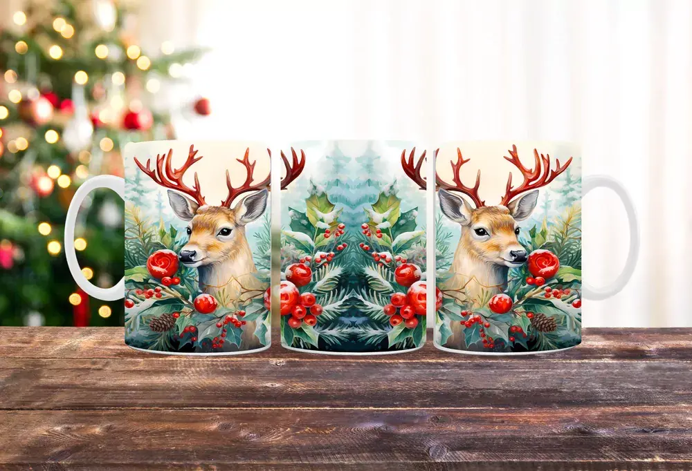 Motiv jelena ve vánočním lese vás okouzlí svou krásou a dokonalostí, ať už si do něj nalijete horkou čokoládu, čaj nebo kávu. ☕️💖 Každý doušek vám přinese pocit útulnosti a zimní pohody, jako byste se procházeli tichými lesy plnými sněhu.
