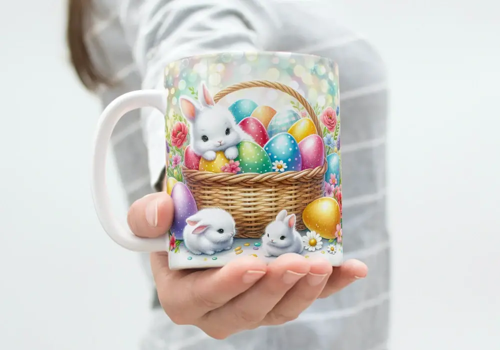 🎁 Skvělý velikonoční dárek! Tento hrníček potěší každého, kdo miluje roztomilé motivy, jarní dekorace a pohádkovou atmosféru Velikonoc. Perfektní nejen jako ozdoba na sváteční stůl, ale i jako každodenní radost při pití oblíbeného nápoje.
