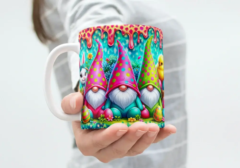 🌈 Vítejte v pohádkové velikonoční říši! Tento hrnek je explozí jarních barev, kde roztomilí skřítci 🧙♂️, žlutá kuřátka 🐤 a rozesmátí zajíčci 🐰 přinášejí radost a sváteční atmosféru. Celý motiv je sladěný s pastelovými vajíčky 🥚, rozkvetlými květinami 🌼 a kouzelnou barevnou polevou, která dává hrníčku jedinečný „sladký“ vzhled.