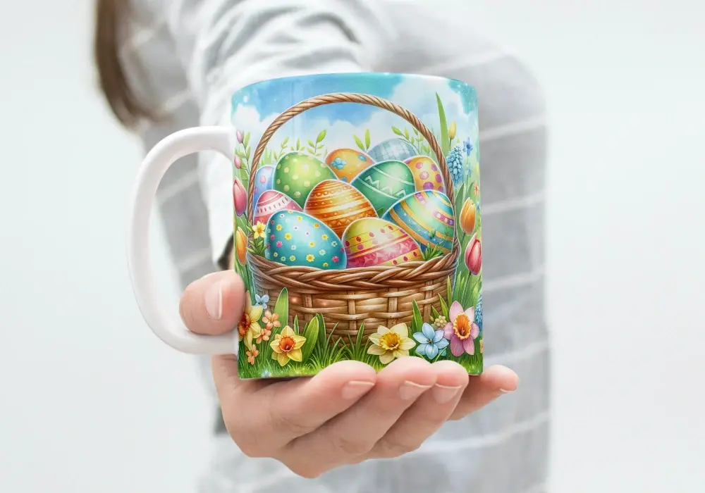 🌸 Velikonoční košík plný radosti – hrnek s jarním motivem 🐣🌼